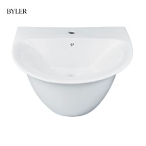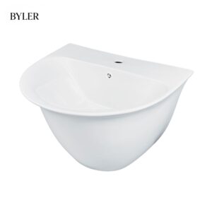 Chậu lavabo Byler BCT 6605 có kích thước tiêu chuẩn 435 x 500 x 335 mm, phù hợp với nhiều không gian phòng tắm từ nhỏ đến trung bình. Sản phẩm được làm từ chất liệu ceramic cao cấp, giúp tăng độ bền và khả năng chống bám bẩn hiệu quả. Thiết kế treo tường liền chân giúp che đi phần ống nước bên dưới, mang lại sự gọn gàng và thẩm mỹ cho không gian.