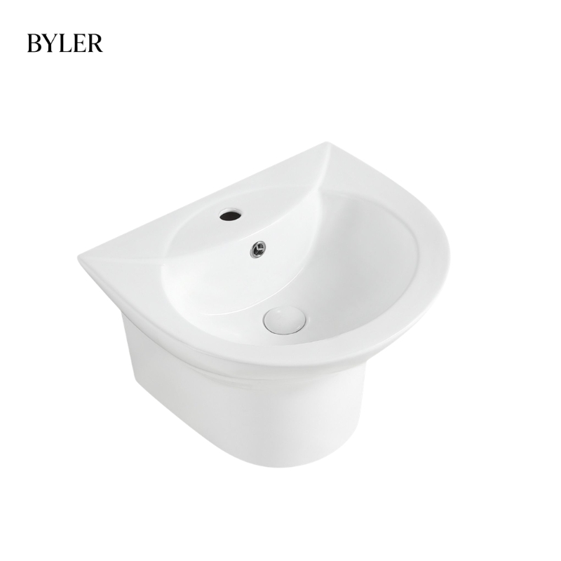 Chậu lavabo Byler BCT 8803 là sản phẩm thuộc thương hiệu Byler, nổi tiếng với các thiết bị vệ sinh chất lượng cao. Sản phẩm được thiết kế dạng treo tường liền chân, giúp tối ưu diện tích và tăng tính thẩm mỹ cho không gian sử dụng. Với kích thước tiêu chuẩn 515 x 450 x 355 mm, lavabo phù hợp với nhiều kiểu phòng tắm từ nhỏ đến lớn.