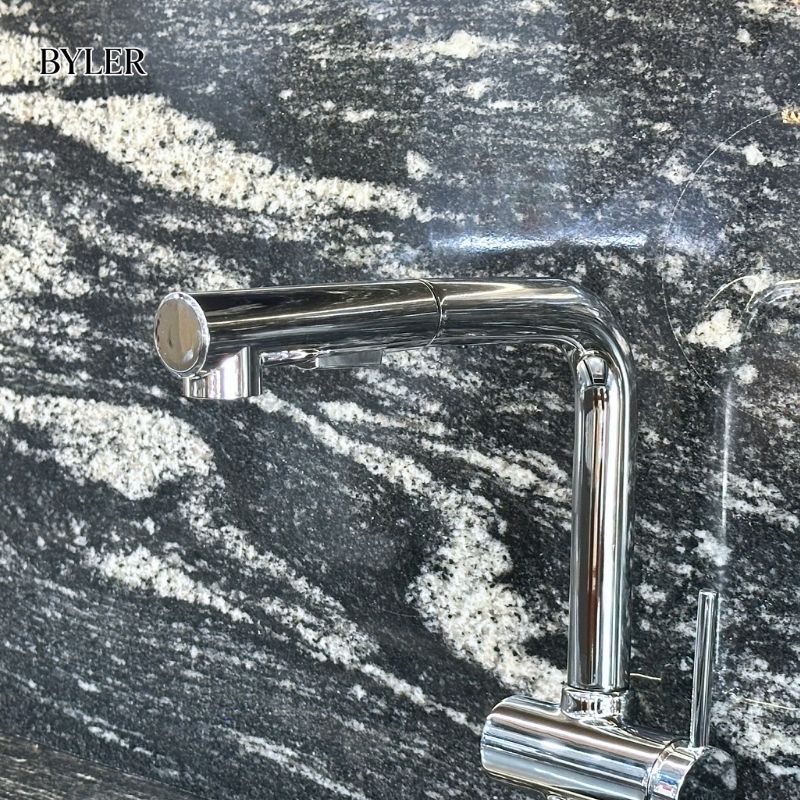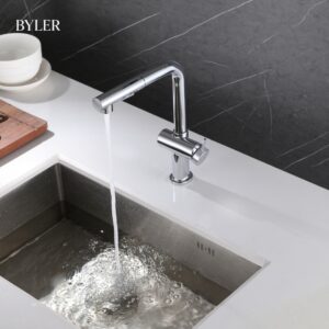 Một trong những điểm nổi bật nhất của vòi rửa bát BYLER BVC 8688 là thiết kế cần vòi xoay 360 độ kết hợp dây rút linh hoạt. Tính năng này giúp người dùng dễ dàng điều chỉnh hướng nước theo nhiều góc khác nhau, thuận tiện khi rửa bát hoặc vệ sinh bồn rửa.