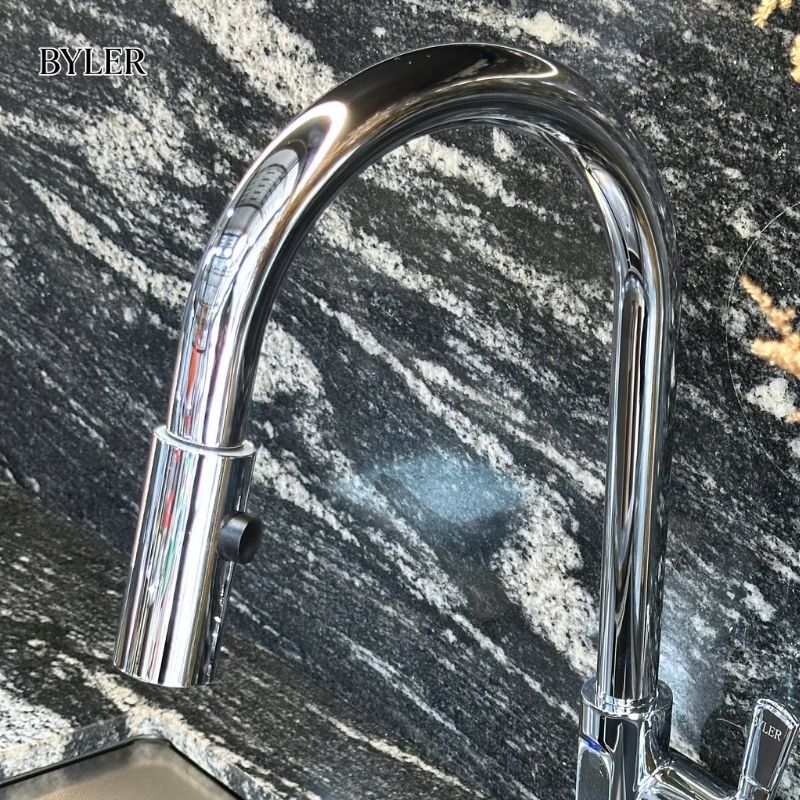 Byler BVC 8701 mang kiểu dáng cổ cao thanh thoát, giúp không gian bếp trở nên sang trọng và chuyên nghiệp hơn. Phần thân vòi được thiết kế chắc chắn, kết hợp với tay gạt tối giản giúp thao tác trở nên dễ dàng và chính xác. Lớp mạ sáng bóng không chỉ tạo điểm nhấn thẩm mỹ mà còn giúp sản phẩm luôn giữ được vẻ ngoài như mới sau thời gian dài sử dụng.