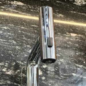 Một trong những ưu điểm nổi bật của vòi rửa bát BYLER BVC 8788 là thiết kế cần vòi xoay 360 độ kết hợp dây rút linh hoạt. Tính năng này giúp người dùng dễ dàng điều chỉnh hướng nước đến mọi vị trí trong bồn rửa.